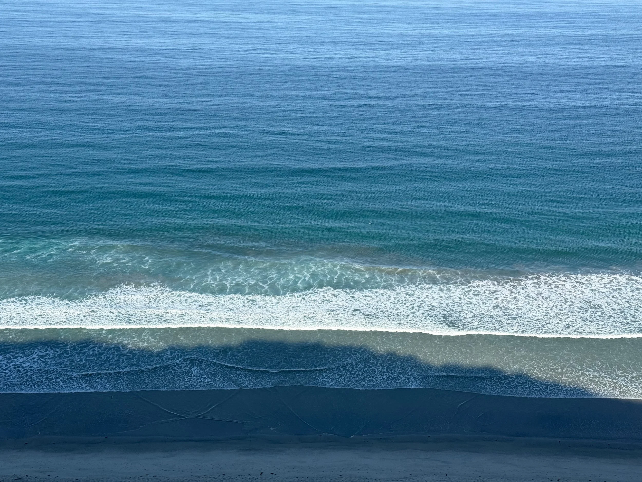 Aerial view of the ocean from La Jolla, CA with waves crashing on the shore.